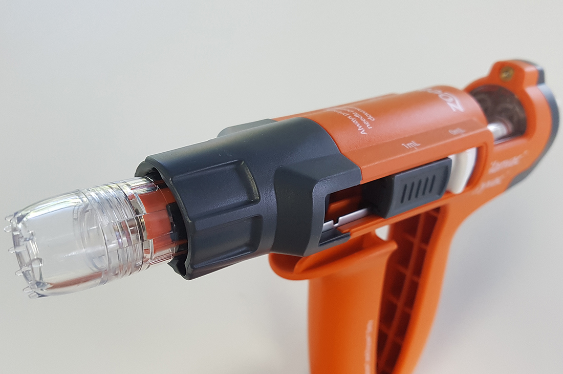 The Slimline Dual Injector has been designed to simultaneously administer two 1mL or 2mL vaccinations through a single, guarded needle.